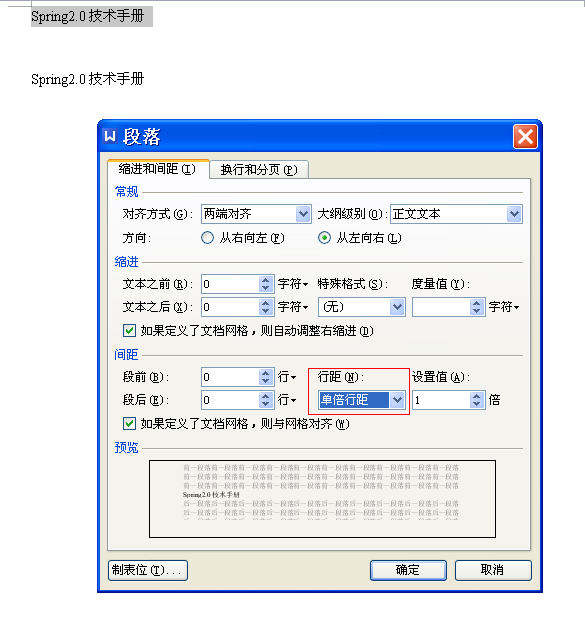 ★:文档默认的行距为单倍行距。默认的段落的间距为0,也就是等到于行距。单倍行距,就是根据该行中最大字体 (一行中可能有多种字体)的高度加上其空余的距离。空余距离是根据该行最大的字体的大小决定的。字体大,其空余的距高就小。该行的高度是根据这些因素自动调节的。当一行中有大号字体时或有上、下标时,能自动调整行距。