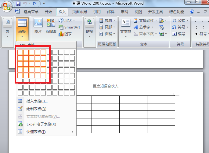 2、在文档中添加表格,鼠标移动到插入-表格中进行插入。
