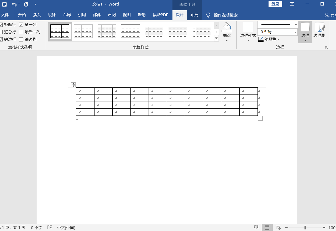 2、选择一个合适的样式在word文档中插入表格