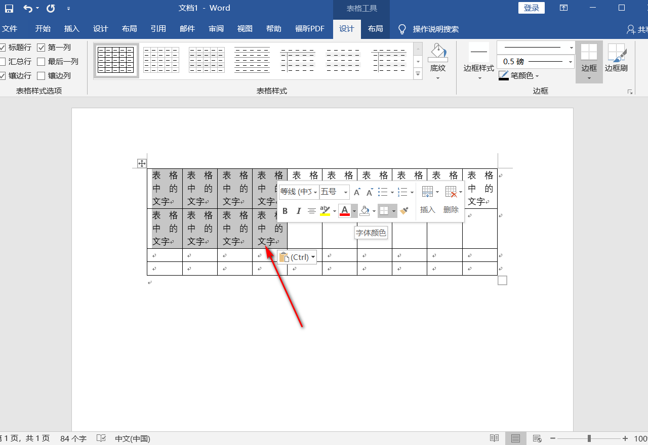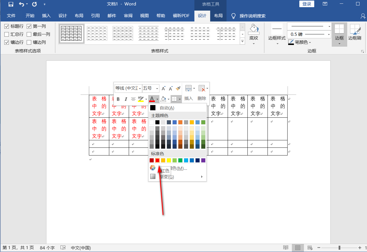 word文档中表格中文字的颜色怎么改