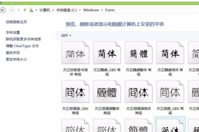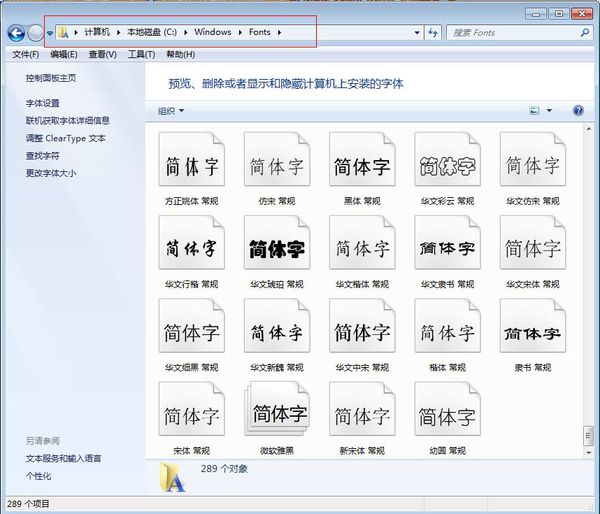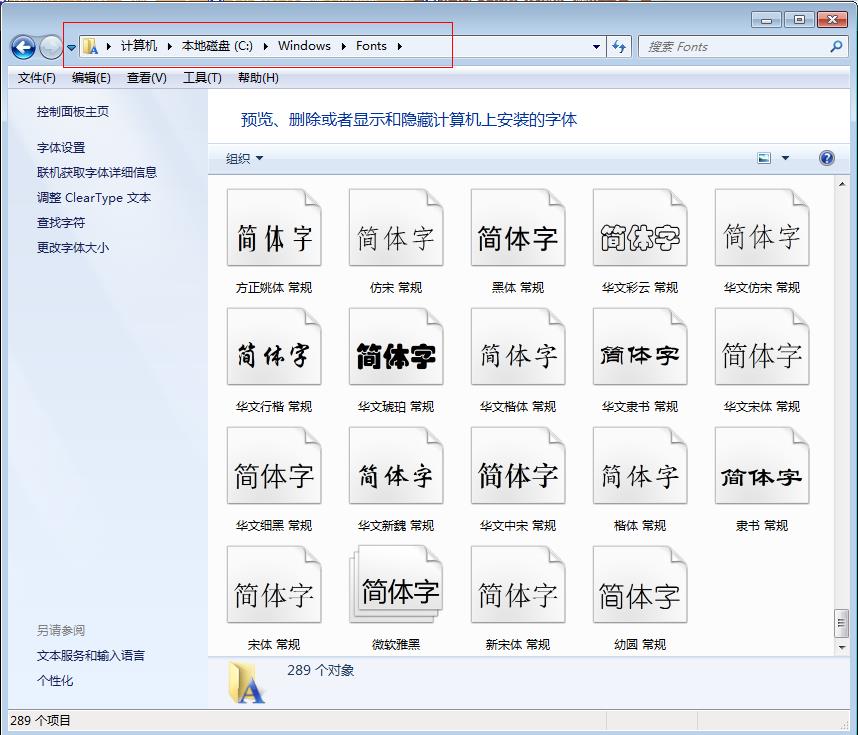 2、下载解压后,打开C:\Windows\Fonts文件夹,将下载的字体直接拖动到此目录下。