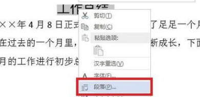 3、右键单击,在弹出的下来菜单中,选择【段落】。