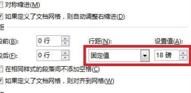 4、在弹出的【段落】对话框中,单击【缩进和间距】选项卡,在【间距】选项中,我们发现了段落的【行距】已经被设置为【固定值】18磅。而就是因为这18磅的高度无发现满足标题字号的显示。