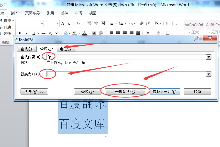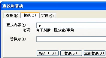 2.“替换”框中输入“^p”(请在英文状态下输入,不含双引号)