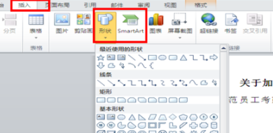 6、接下来该画五角星了,在插入菜单中选择“形状”,在形状中选择“五角星”。