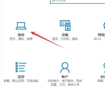 2、在打开的Windows设置窗口中,我们点击“系统”图标,如图红色箭头点击的位置。