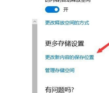 4、在打开的界面中找到蓝色字体“更改新内容的保存位置”选项并点击。