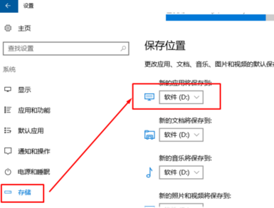 可以尝试打开设置面板,点击存储,设置保存位置为:D 盘,保存后再试试。