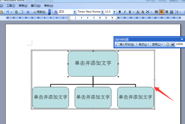 要在word文档里面修改组织结构图单一框架的大小,以word2003为例,步骤如下: