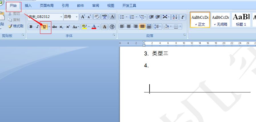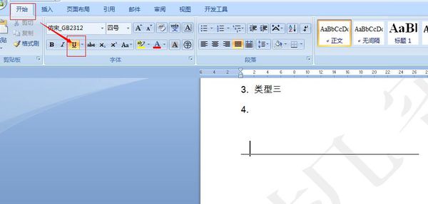方法:在空白处打空格——选中空格——开始——下划线,如图: