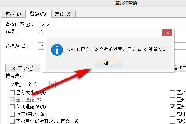 5、接着在查找内容里面就会出现如下字符,并在替换输入^p。