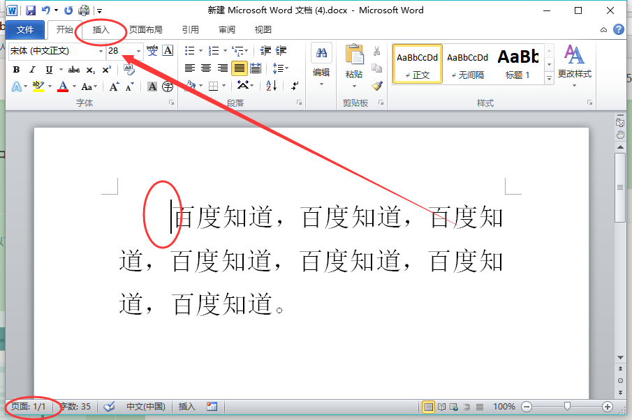 1、打开需要操作的WORD文档,光标停在需要添加空白页的位置,点击工具栏的“插入”标签页。