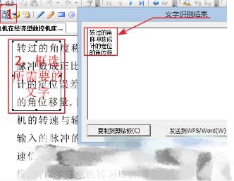 软件工具栏上有文字识别功能的。框选出你要识别的文字部分,然后软件自动弹出对话框,然后发送到WORD文档就行,我刚用,7.2版的