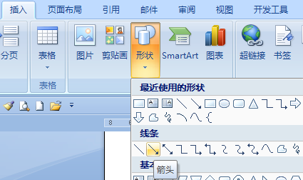 1、单击---->形状---->带箭头直线按钮,如图所示;