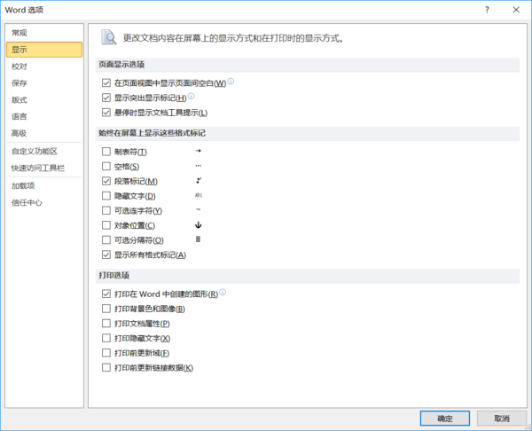 文件菜单→选项,Word选项对话框,→显示→勾选显示所有形式的标记。