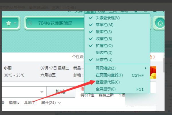 3、在选项中选择后面位置的查看源代码。