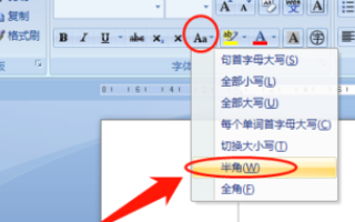 5、在弹出的下拉列表中选择“半角”或者“全角”。