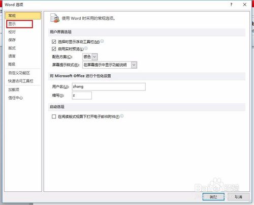 4、进入到word选项之后,在左方的菜单栏,找到第二个选项“显示”,点击“显示”按钮。