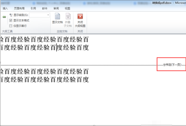 6,可以看到分节符就是这样样子了。将光标放到分节符的前面