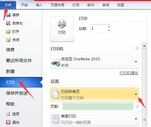 步骤1:点击【文件】--【打印】,然后点击【打印所有页】下拉框