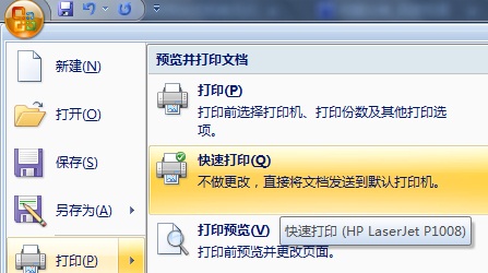 4、选择OFFICE按钮——选择打印——选择快速打印。