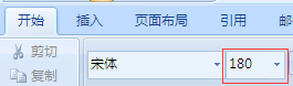 2、选择开始选项卡,在字号处输入180磅并回车即可,如图所示。