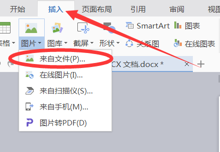 2、点击工具栏中的“插入”,选择图片栏目下的“来自文件”。