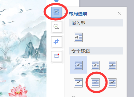 4、在插入图片后,点击图片右上角的“布局选项”并选择“衬于文字下方”。