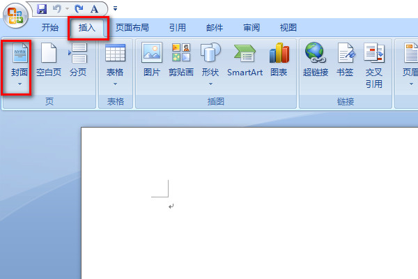 单击“插入”选项卡下“页”组中的“封面”按钮。