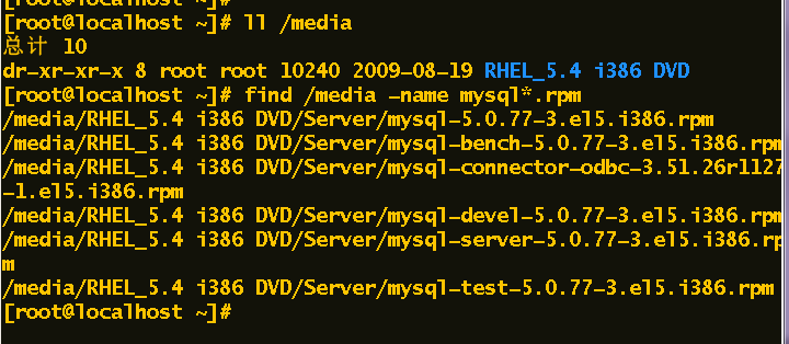 使用find命令查找光盘中的内容即可。比如要查找mysql相关的rpm包。可以执行如下命令: