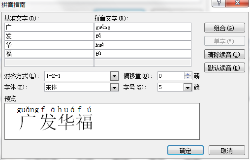 此时打开拼音指南对话框,这时都是单子的拼音