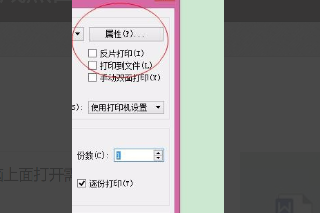 2、在右边弹出的打印设置里,点击“打印机属性”;