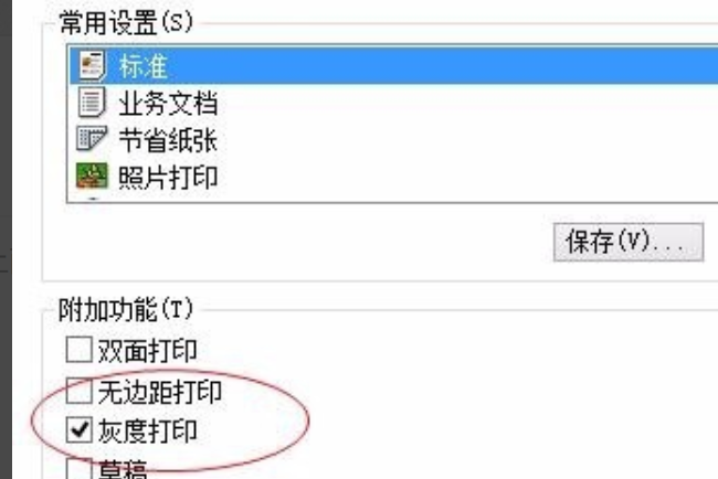在打印机属性中设置黑白打印。