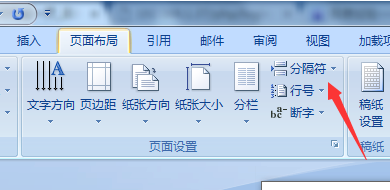 3、进行到页面布局的选项之后,进行点击“分隔符”的选项。