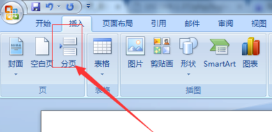 6、进行点击插入的方式,然后进行选择为“分页”的选项。