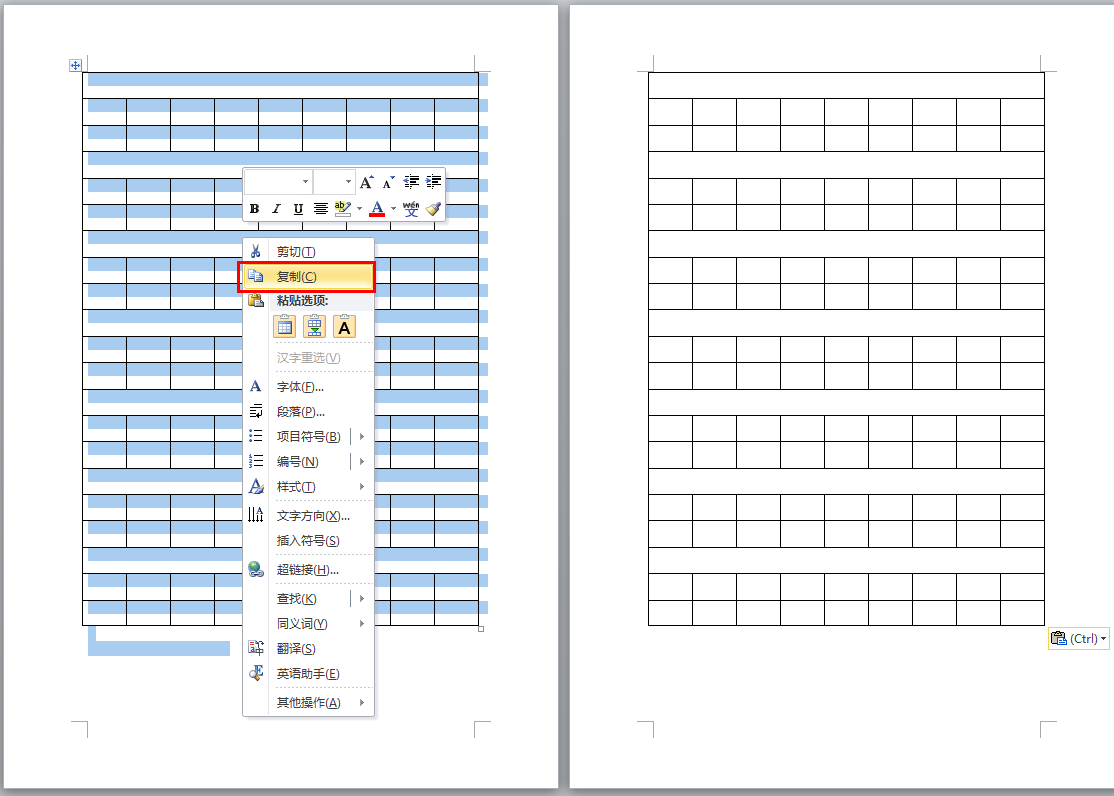 word怎么在一页上排出多个一样的表格