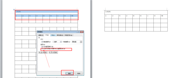 下面格子里内容太多放不了,选中单元格,打开表格属性对话框,勾选“允许跨页断行”