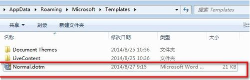 3、路径窗口如下,可以找到这么一个文件Normal.dotm,这是一个默认的样式表。