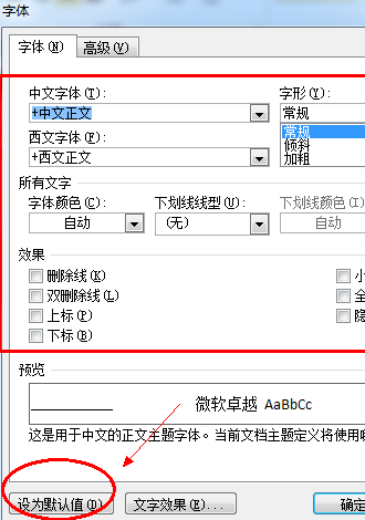 word2010 怎么设置默认字体