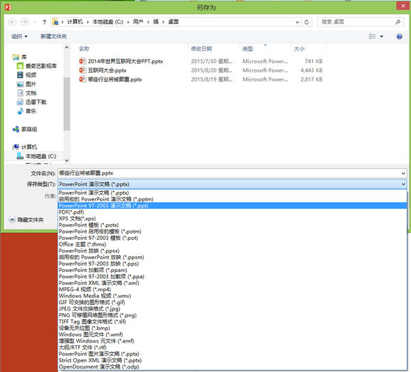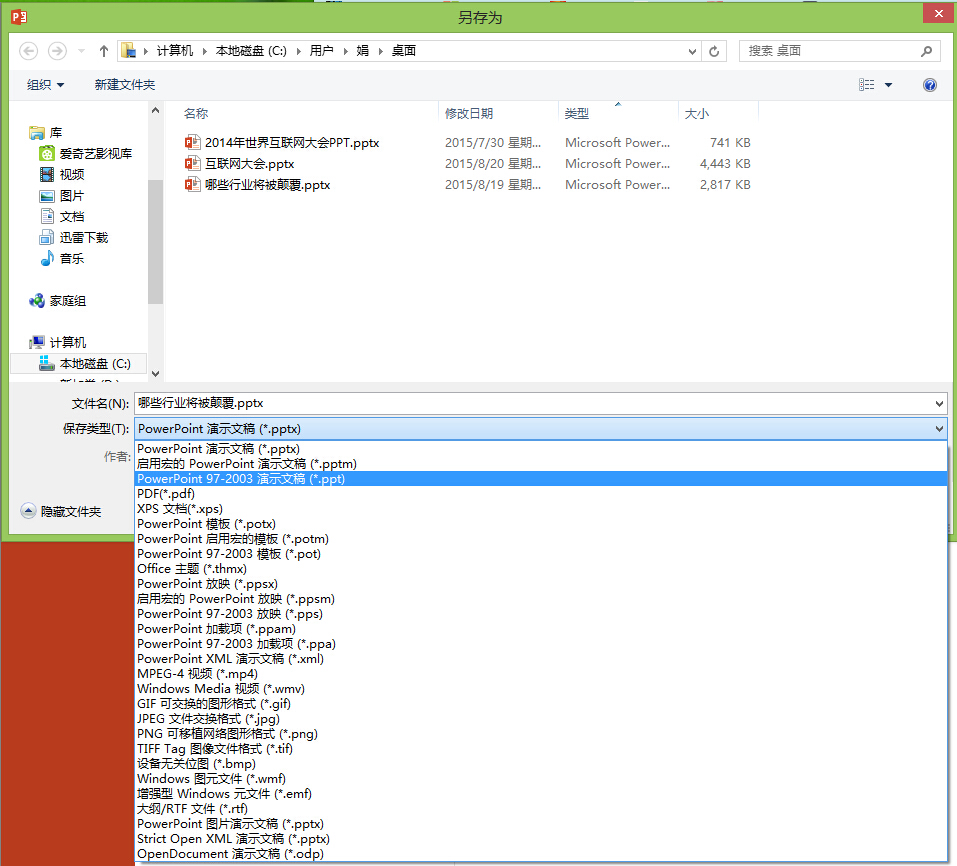 不过高版本的PPT在保存时也可以选择保存类型为.ppt的,如图选择好保存类型,点击保存即可