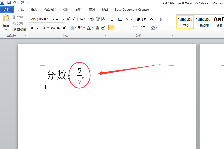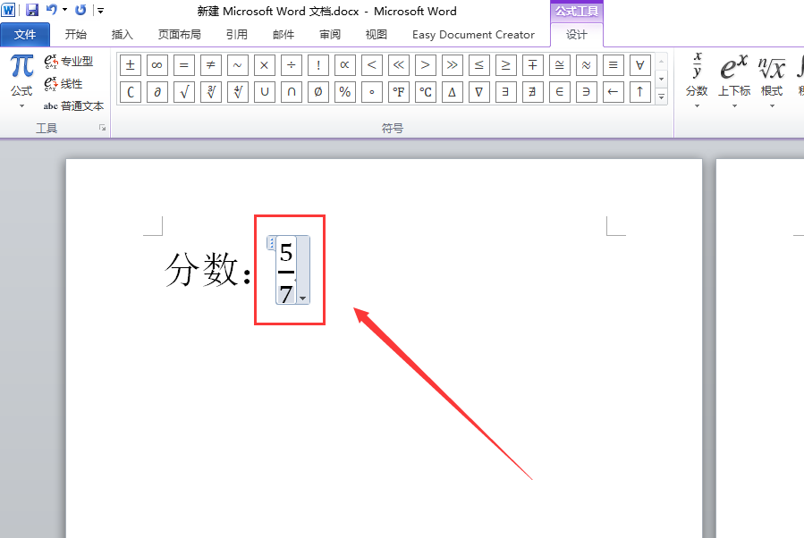 6、可发现,在word中分数几分之几的形式已成功输入。