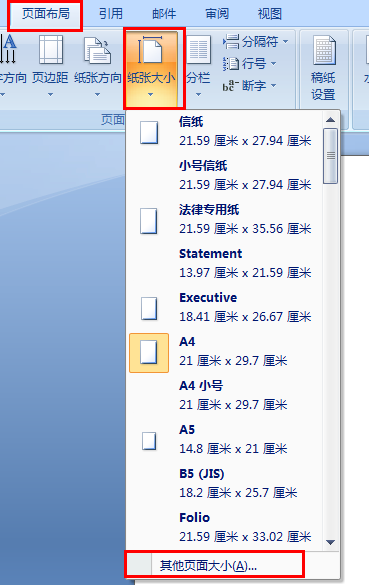 第2步、选择纸张大小->其它页面大小。