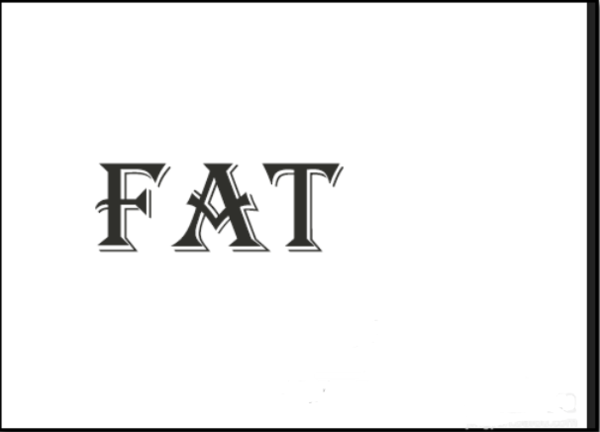 1、比如我们先创建一个文字图层FAT,如下图示例。