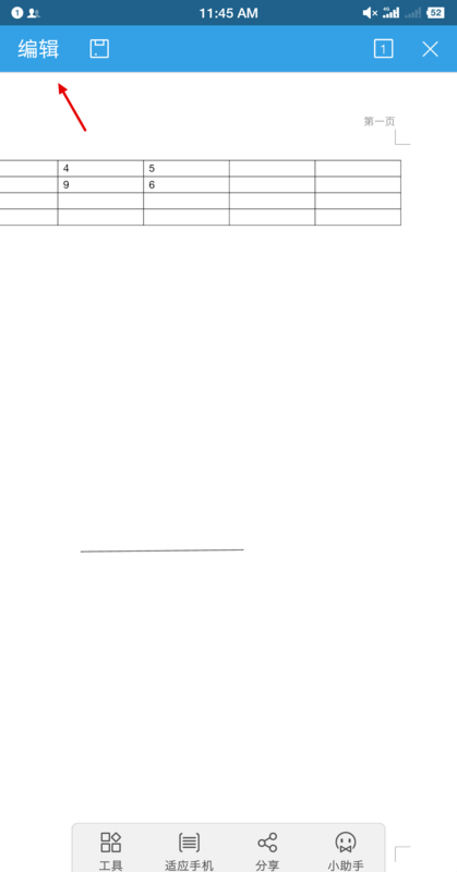 1.打开该word文档,点击文档上方编辑选项,点击该选项进入编辑页面,如下图所示。