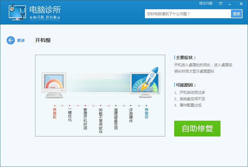 5,然后使用电脑管家——工具箱——开机慢,使用电脑管家优化一下您的开机启动项。
