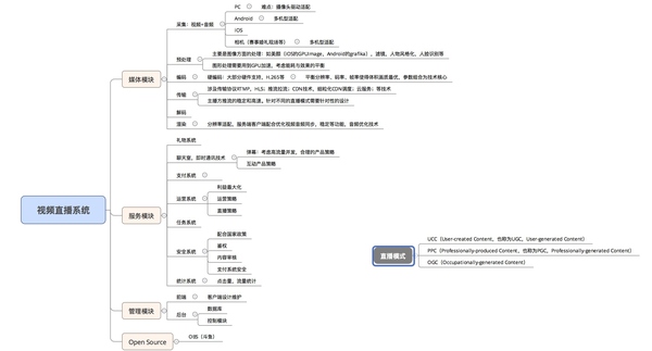 媒体模块是直播系统的技术核心,服务模块是关乎用户体验,管理模块对数据,系统进行管理控制。