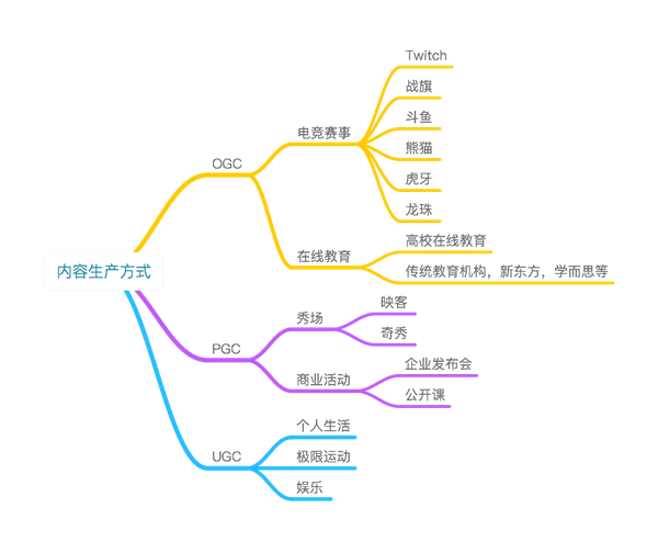 而在内容划分上,各中直播模式依赖不同的内容生产方式。如下图所示: