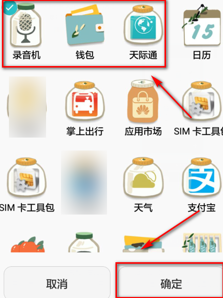 5、若要将隐藏的应用放回主页面,只要点击软件图标,小勾消失后点确定即可。