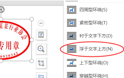3、点击“环绕”,选择“浮于文字上方”。