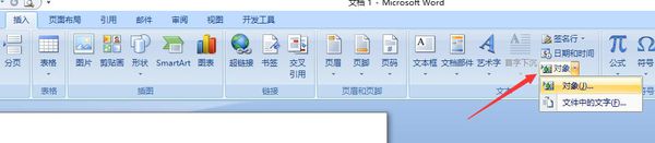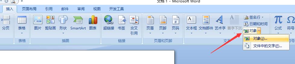 在插入选项中选择“对象”。
